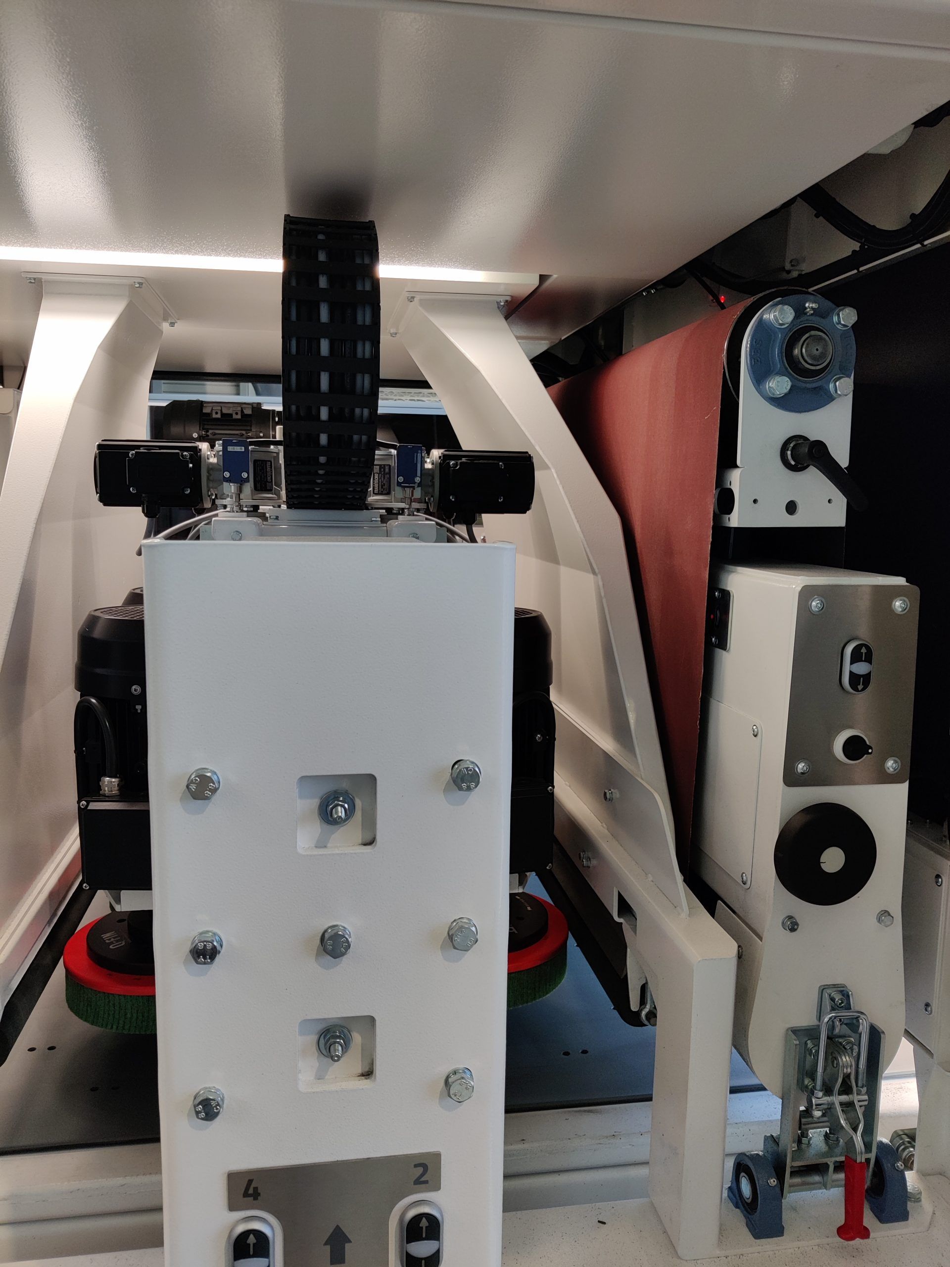 Mit der SER1200 Multibrush von Q-Fin können Sie in einem Durchgang mehrere Arbeitsgänge an Blechteilen mit einer Breite bis zu 1200 mm durchführen. Entgraten, Kantenverrundung, Radius 2, Entfernung von Oxidschichten, geschliffenen Finish oder richtungsloses Finish. Das alles ist programmierbar für die automatisch einstellbaren Arbeitsstationen.